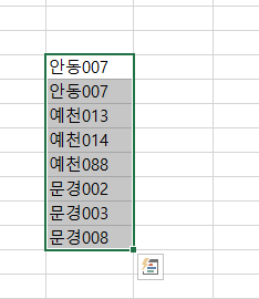 우선, 기능을 설명하자면 안동 007부터 문경008까지 지정한 후, 생성될 위치를 지정! ( ! 중복값이 보이는데, 중복값 제거기능 추가!)