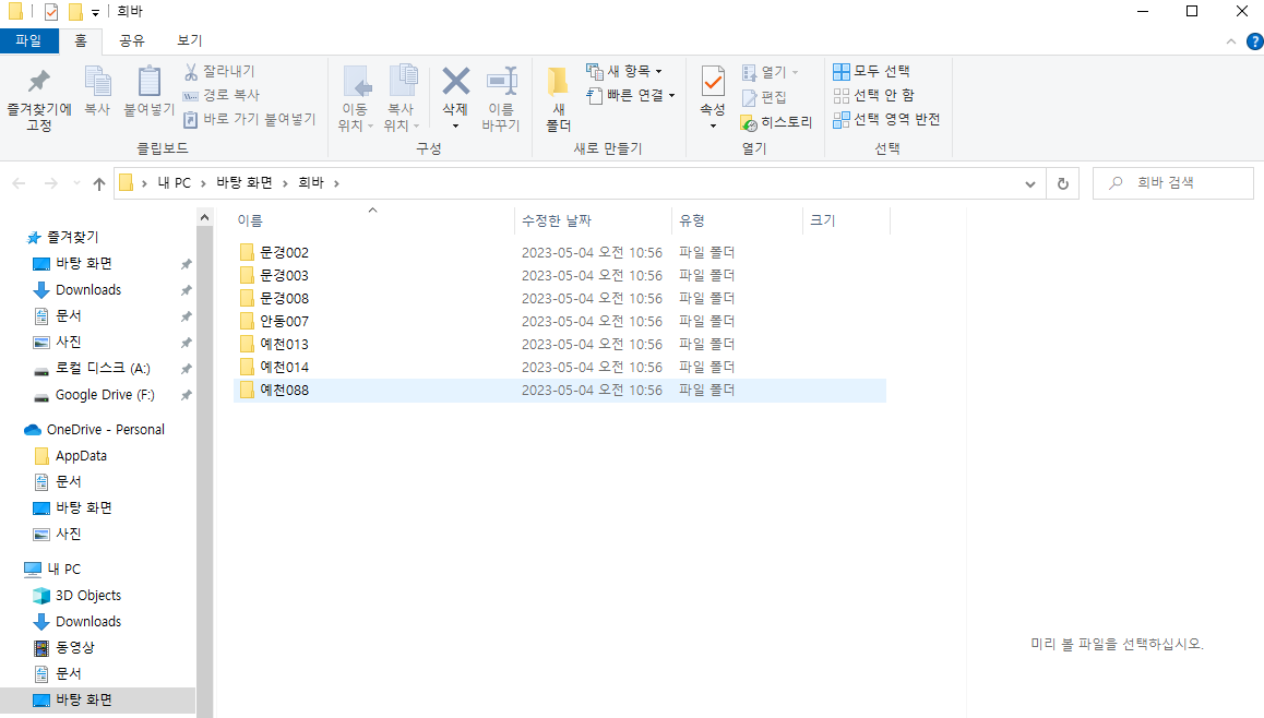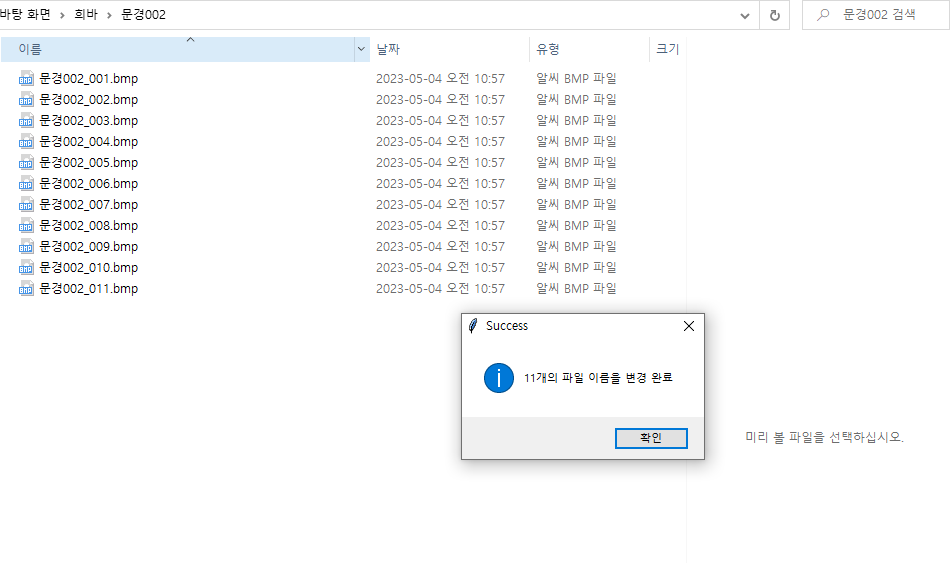 만들어 놓은 문경002 폴더에 사진에 이름을 붙이고 싶은데