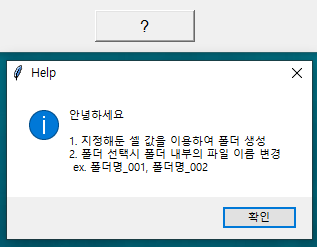 우선 제가 업무에서 필요한 기능들을 한번 생각을 해봤고, 아래처럼. 폴더를 만드는 프로그램을 만들어봤습니다.